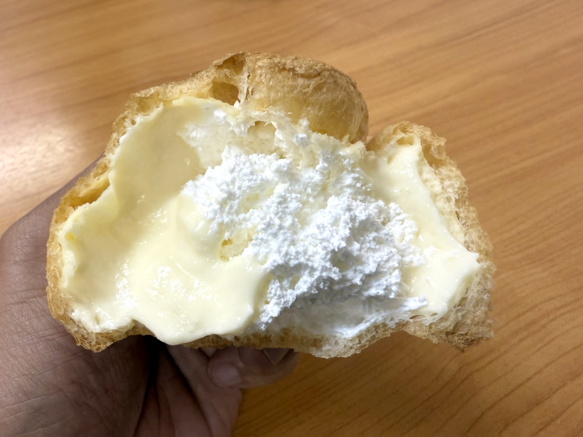 またシュークリームのずっしり中身が詰まっており、108円とは思えない満足感。200~300円するコンビニスイーツがゴロゴロあるこのご時世、108円でこのボリュームは “奇跡的” と言っていいかもしれない。