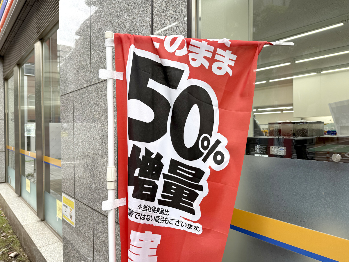 物価高にあえぐみなさんに朗報だ。なんと全国のミニストップで『50%増量フェア』が始まってるゾォォオオオ! すでに1週間以上経ってるみたいだけど気付かなかったァァァアアアア!!