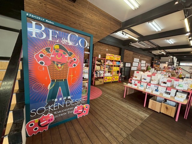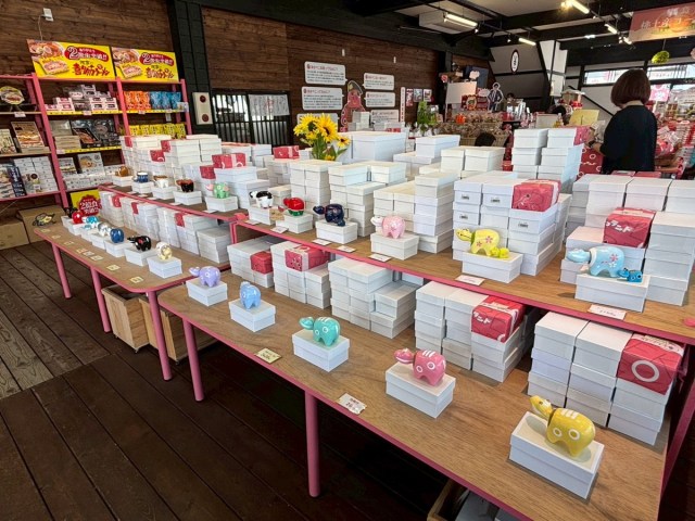 1階の物販エリアには赤べこグッズがズラリと並ぶ。