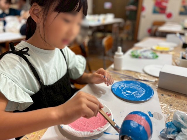 体験は2種類あり、ベースに赤色が塗られた状態から絵を描くパターンと真っ白な状態から自分で色を塗るパターンのどちらかを選べる。