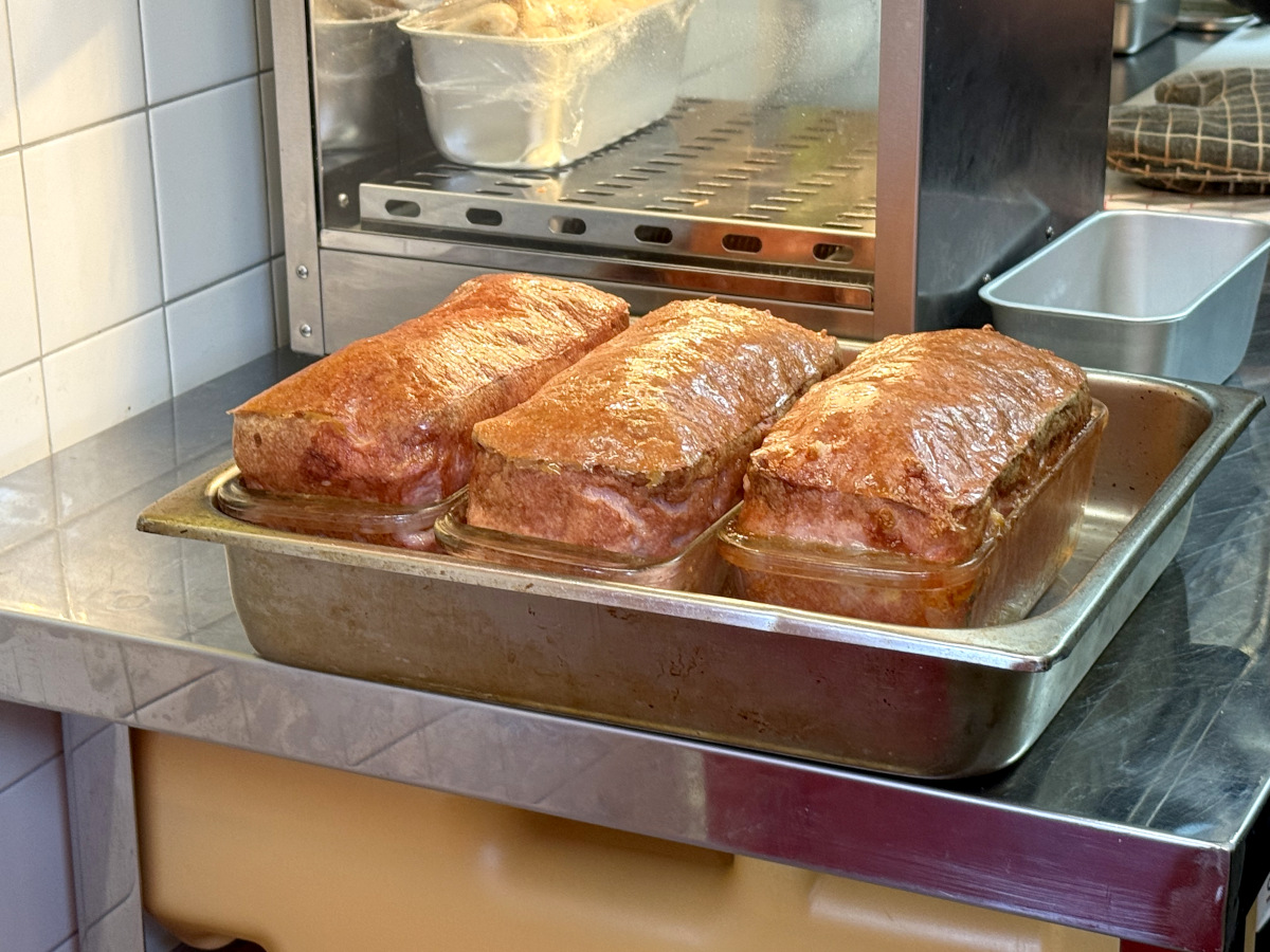 で、ソーセージと言っても「レーバーケーゼ」は我々が想像するソーセージとは違い、超巨大! というか、パウンドケーキみたい!! このソーセージもオリジナルのレシピで肉屋さんに作ってもらっているとのことだ。