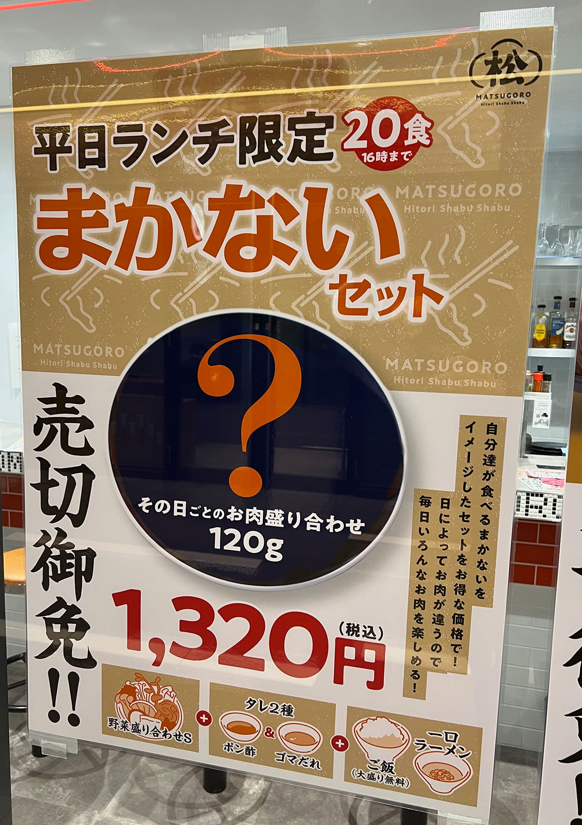 新宿・歌舞伎町のトー横のすぐそば。正確に言うと、新宿東宝ビルに入っている「ひとりしゃぶしゃぶ 七代目 松五郎」の前で、『?』マークのメニューを発見した。