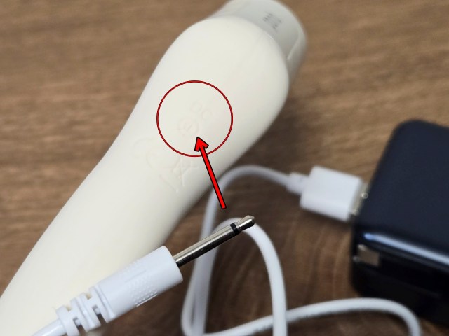 ▼付属のコードの本体側は少し特殊なタイプだが、Type-Cから充電が可能。本体に穴が開いてないから最初はビビるけど、シリコン貫通で端子に挿せばOKみたい。