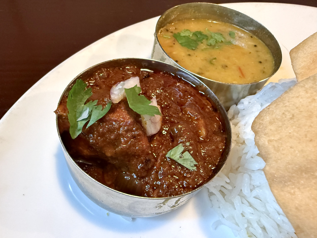 酸味は弱めでニンニクがガツンとインパクト系。ポークビンダルーはレギュラーメニューではない。