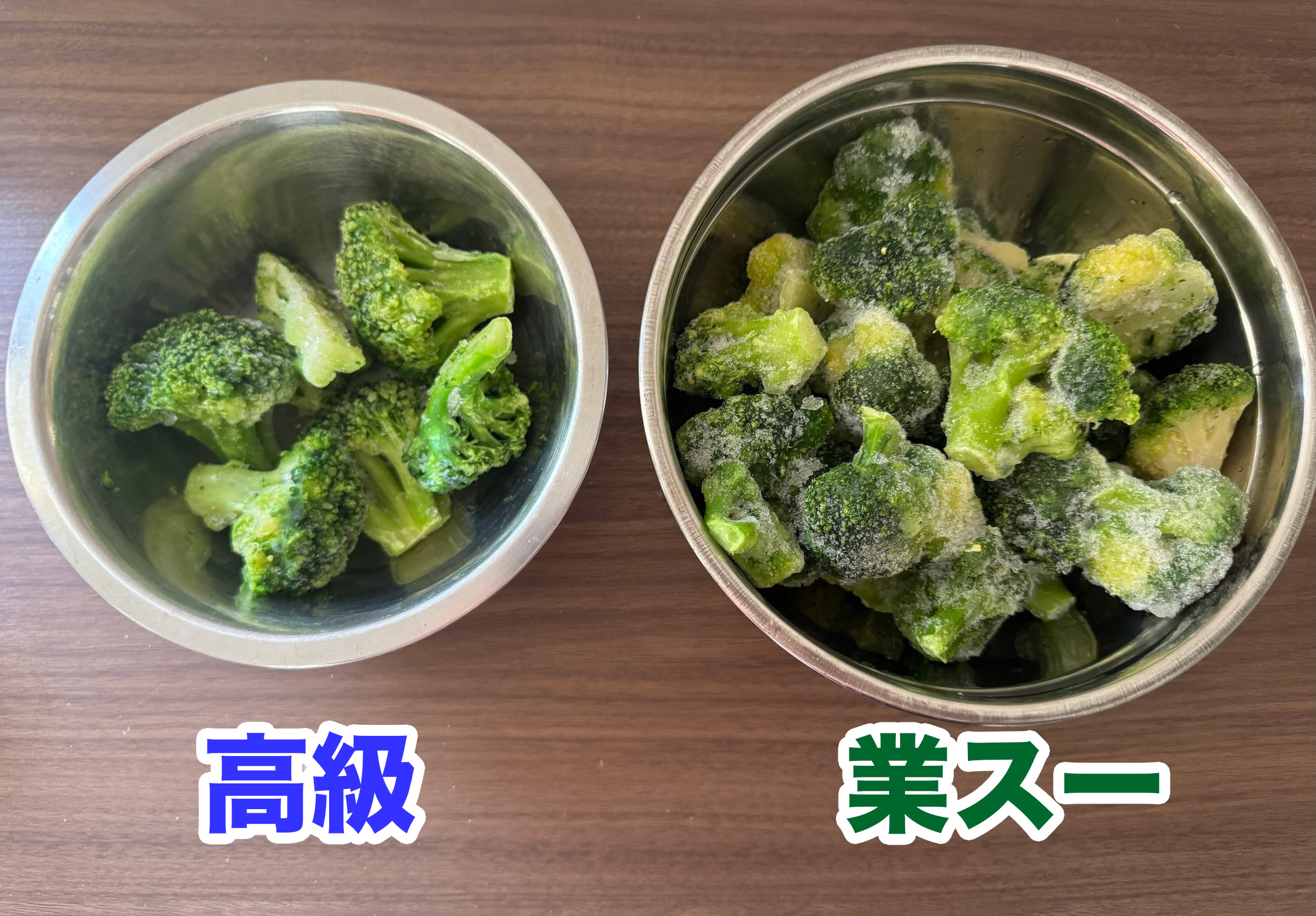 キングブロッコリーの価格を生ブロッコリーに反映すると、ブロッコリー1個あたり軽く1000円を超える。「金に糸目はつけないから、最も生ブロに近い冷ブロをストックしたい」という人には非常にオススメといえるだろう。