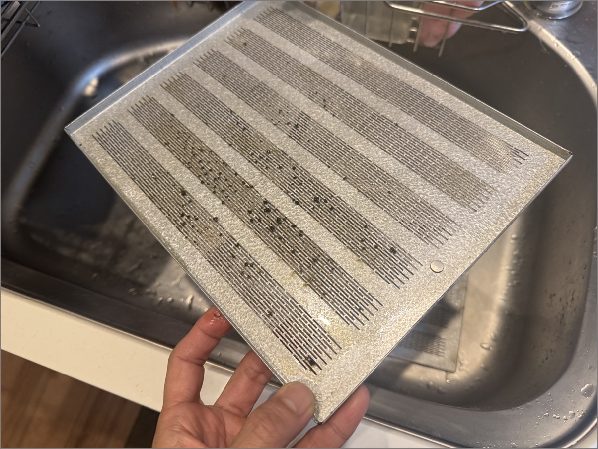 レンジフードの掃除が劇的にラクになると話題の『スターフィルター』を取り付けて1年以上放置 → 初めて交換してみた結果…