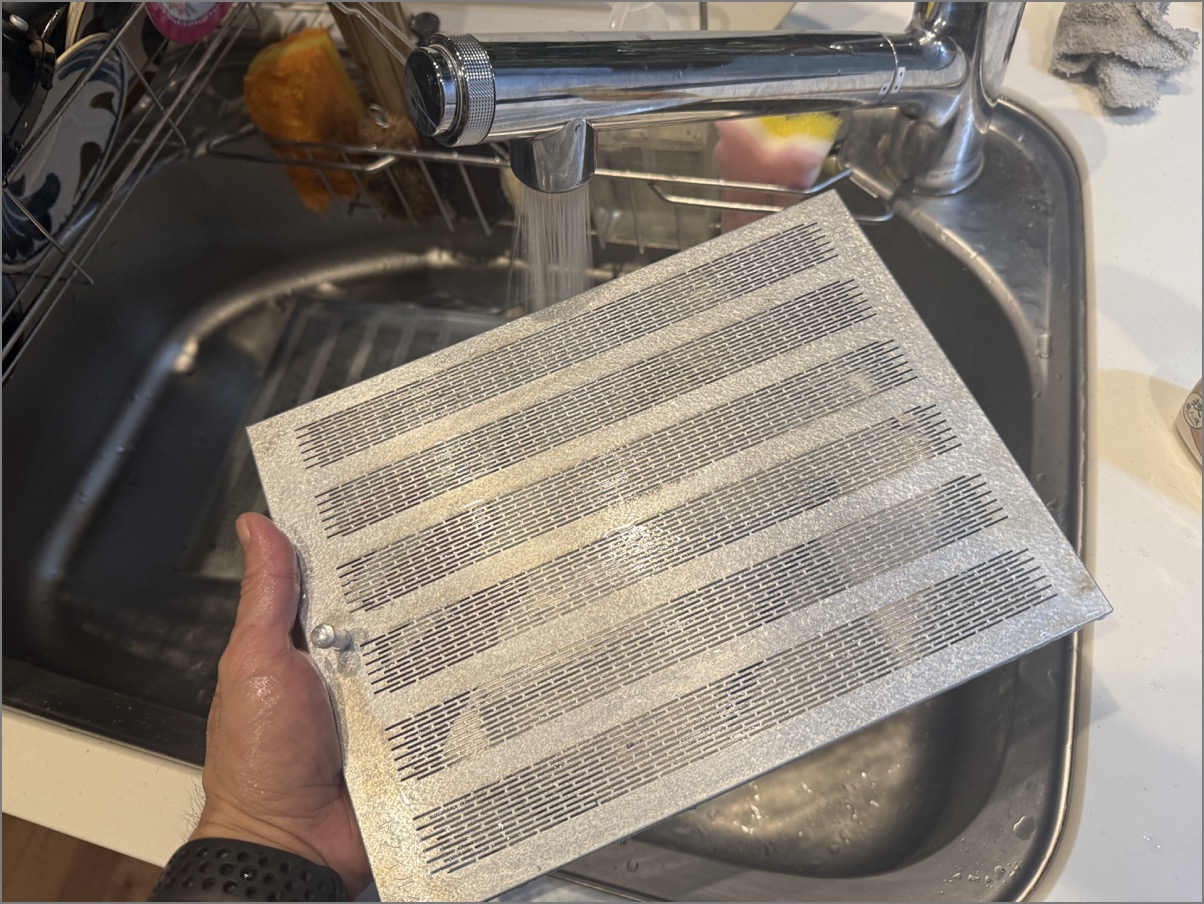 昨日、リビングのエアコン掃除をしていた。フィルタを外して掃除機でホコリを……と思ったら、思った以上にこびりついており、水洗いする必要性を感じた。
