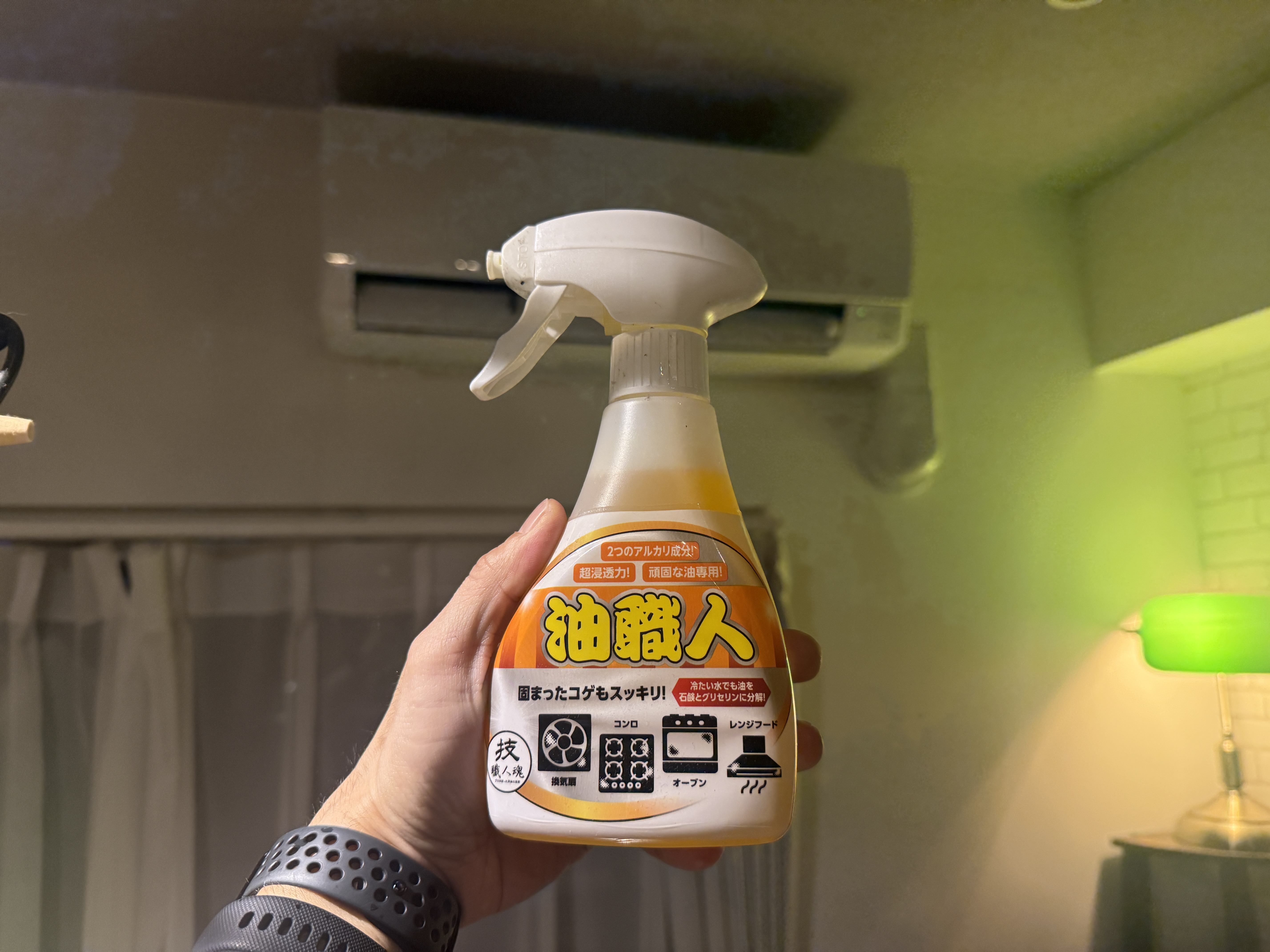 その後、滞りなくエアコン(2台)の掃除は終わるも、まだ『油職人』の実力が気になっていた私。