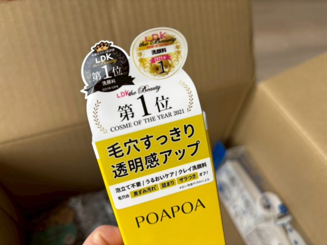本気のコスメ批評誌「LDK」で2021年に第1位を獲得した洗顔料「POAPOA」が丸々1本入っていた。