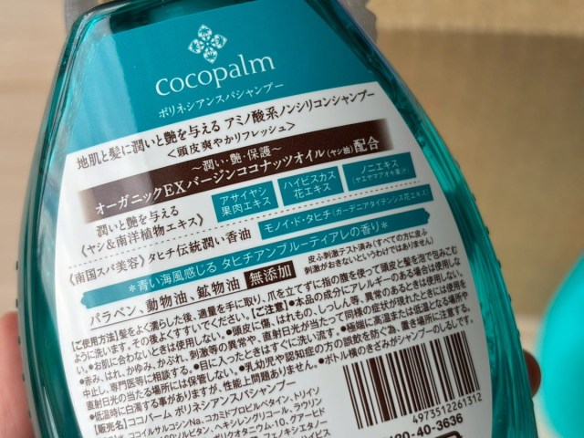 つづいては「cocopalm」のシャンプーとトリートメントのセット。