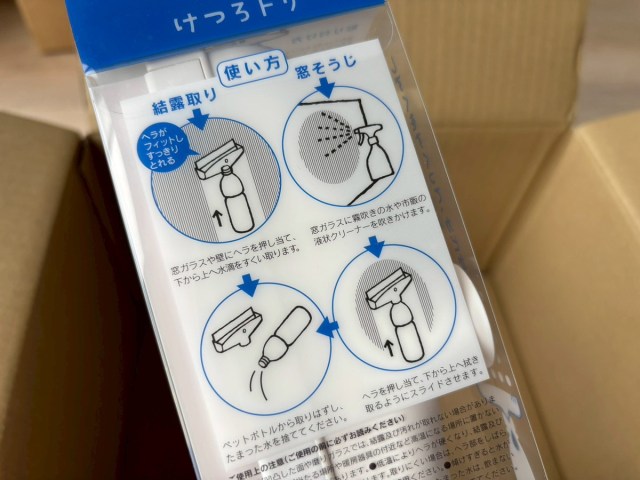 裏面を見ると、ペットボトルに差して結露を吸い取るアイテムらしい。冬は暖房の影響で意外と結露が出るので、これは地味に使える。