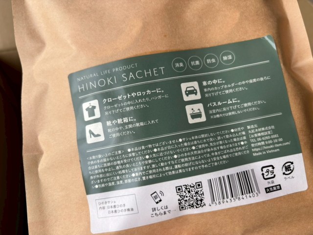 クローゼットや靴箱に入れて使う、防虫・消臭・抗菌アイテムらしい。