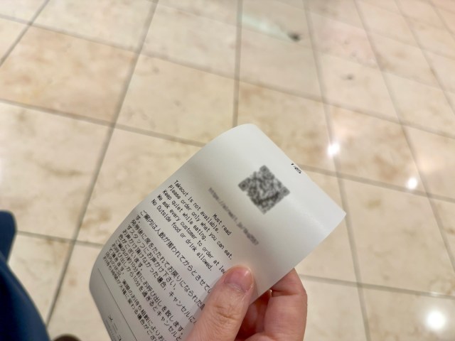 スマートフォンで順番がわかるのでお店を離れてもよいが、旅の疲労もあった筆者は心を無にして地蔵になった。待つこと1時間40分。ついに番号が呼ばれた!!