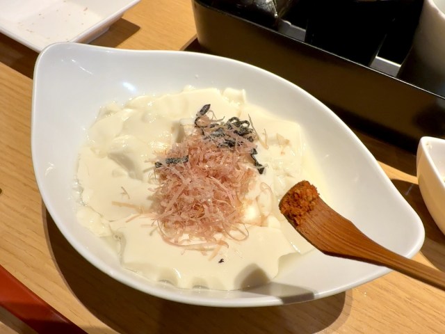 メインディッシュとも呼べる「ふわふわ おぼろとうふ」がやってきた! 不二乃では御膳料理を頼むとおぼろとうふ(コースによっては湯とうふ)がおかわり自由となる!!