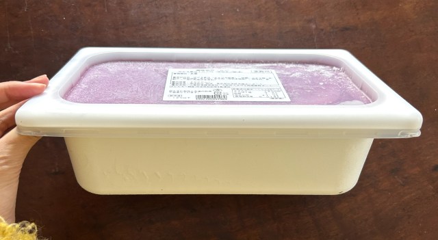 軽くレンジで温めるとドーナツはふわっふわで、朝ごはんやおやつにちょうど良し。ソルベは2000mlもあり、確かにこれは業務用のボリュームだと頷いてしまった。