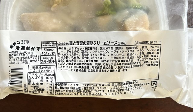 ・冷凍おかず 鶏と野菜の濃厚クリームソース