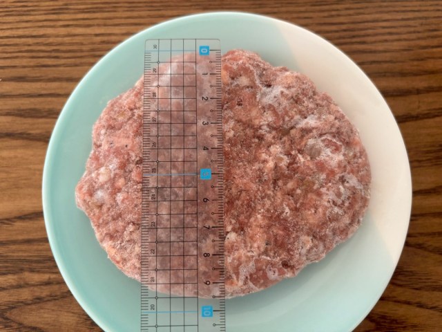 裏面の説明通り丁寧に解凍し、フライパンでじっくり焼いていく。焼いている間から肉肉しい香りが部屋中に広がる。