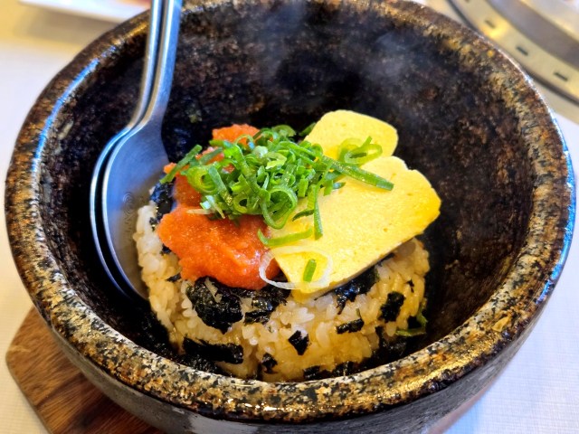 ▼「石焼かねふく明太子&だし巻き玉子ビビンバ」は明太子たっぷりでおいしい! お米にタレがかかっているからか、具材が明太子と卵焼きだけでもしっかり味がついている。