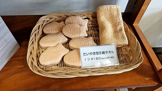 ▼たい焼き型圧縮タオル(税込160円)なる面白い商品も販売中。