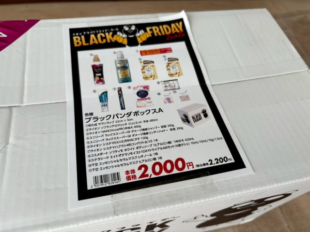 ブラックパンダボックス(2200円)という、ブラックフライデー版の福袋も登場。ボックスはA、B、Cの3種類あり、あらかじめ、メーカーや内容が分かるのも嬉しい。