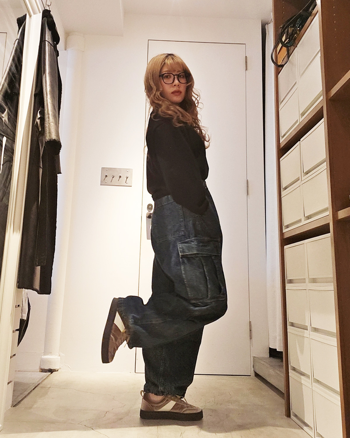 普段は完全にスカート派な私だが、「それなら、とことんカジュアルに!」と思い、今回はあえてダボっとしたカーゴパンツをチョイス。これが予想以上に可愛いのなんの。