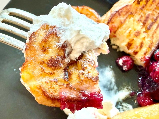 フレンチトーストをひと口食べると、外はカリッと中はふんわり。甘さ控えめで、フルーツの酸味とホイップの甘みが最高にマッチする……ウマい。フレンチトーストだけを “わんこそばスタイル” で永遠に食べ続けたいぞ。