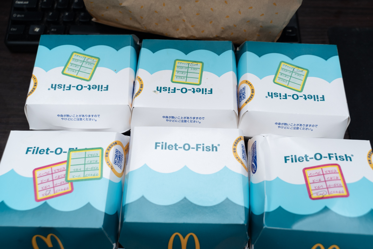 マックではオーダーの際に、タルタルの量を変更することができる。今回はこれを利用し、タルタル無し、少なめ、並、増量、増量の倍増を作るための増量2個の、計6個のフィレオフィッシュを購入してきた。