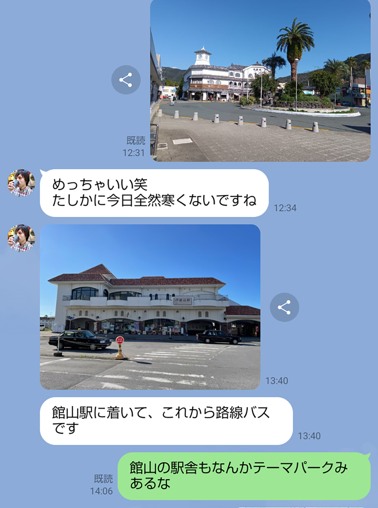 東京湾アクアブリッジのおかげで南房総は距離の差以上に近い様子。アクセスのしやすさは良いところ。ただ、送られてきた画像にはそこはかとなく哀愁が漂っていた。