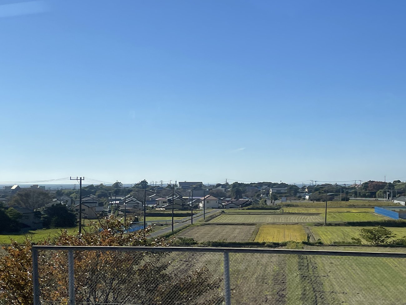駅前を離れ街中を走る東海バス。20分くらいでより牧歌的になる車窓の景色。