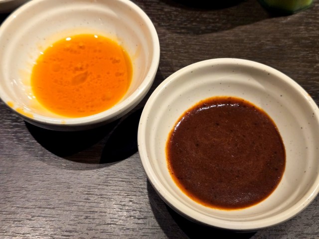 そして、麻辣湯だしをより本格的に楽しむには、薬味コーナーの「麻辣油(マーラーユ)」や「麻辣醤(マーラージャン)だれ」が必須!