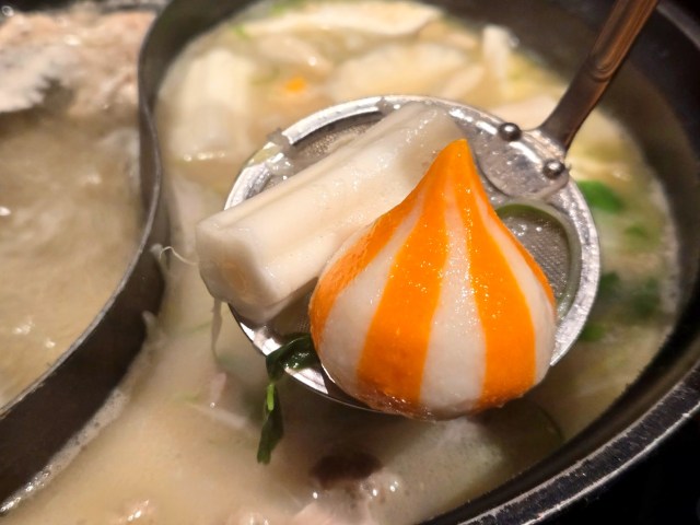 カラフルで目を引く紅白団子も、プチプチする蒲鉾みたいな感じで気に入った。