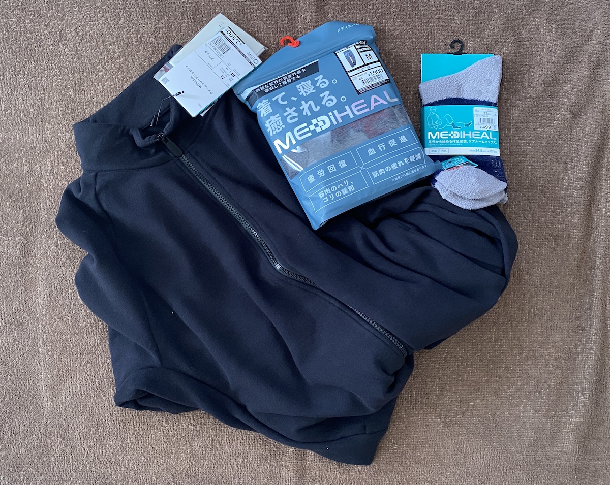 それでも長袖シャツは売り切れている凄まじい人気ぶりで、なんとか入手できたのはフリースジャケット(2500円)、靴下(499円)、ズボン(1900円)の3つ。んで、実際に使ってみた感想を結論から言うと別タイプのリカバリーウェアだった。