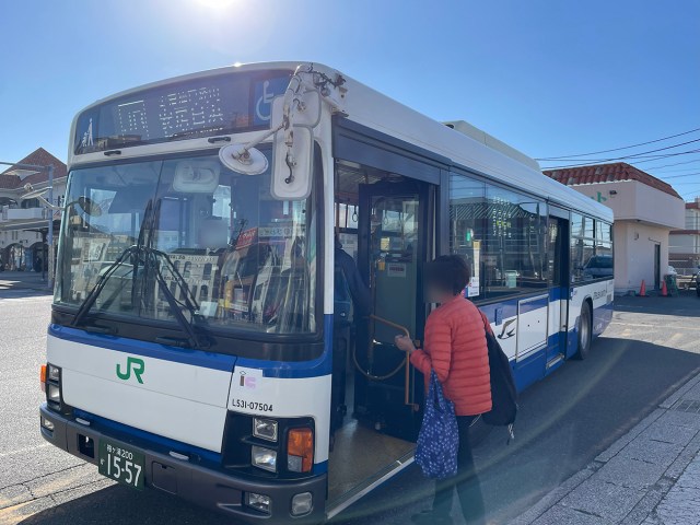 しかし、当然これで終わりではない。今度は路線バスに乗り換えるぞ。13時40分発の南房州本線に乗って、野島埼灯台を目指す。