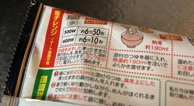 ▼肉ごぼう天うどんより、肉うどんのほうがレンチン時間が長めでした