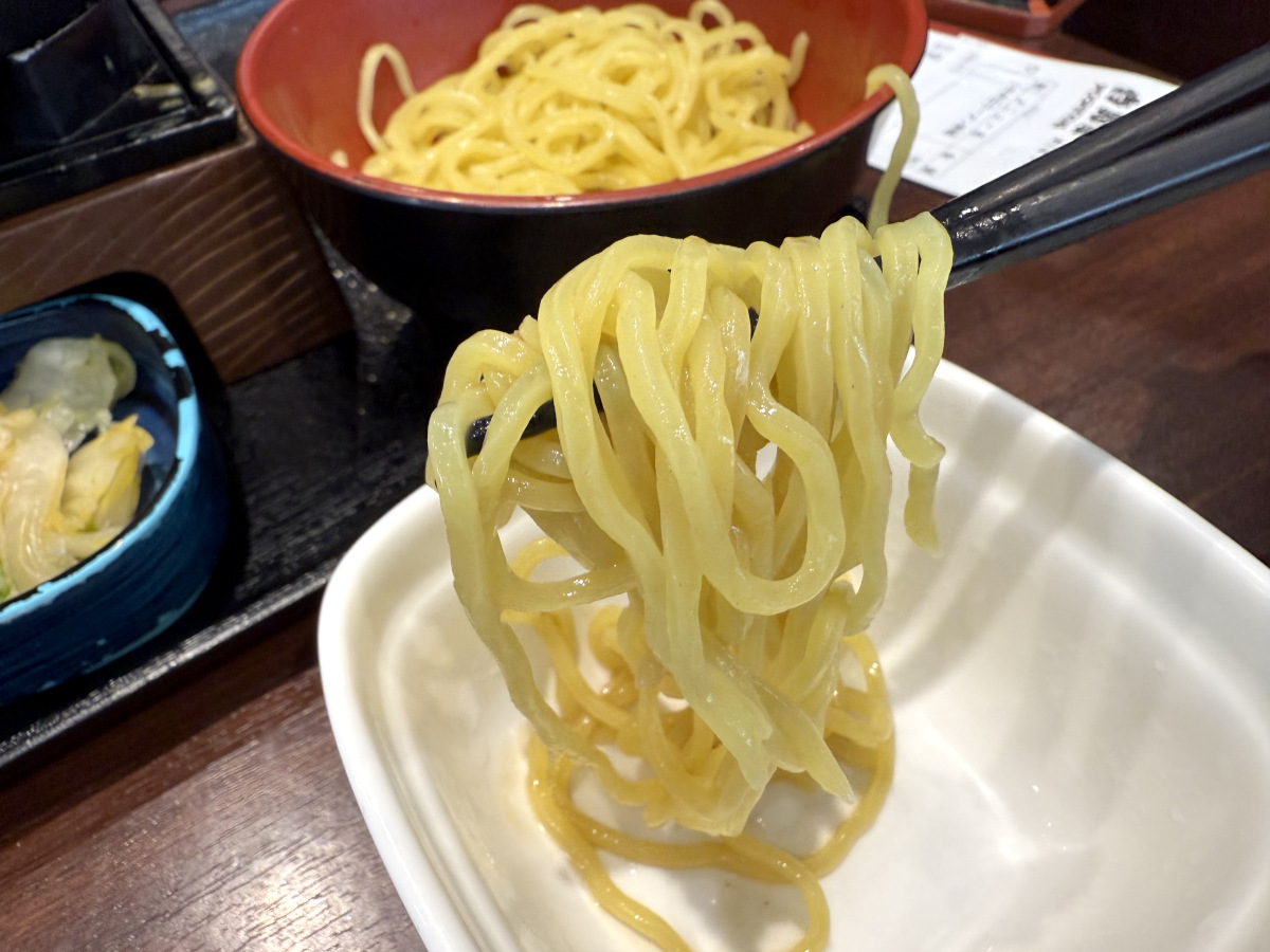 ただし「つけ麺」は、スープの沁み込み度が足りないため、やや物足りないかもしれない。ラーメン自体はつるつるとのど越しが良いものの、特徴が無いと言えばその通りのシンプルな麺であった。