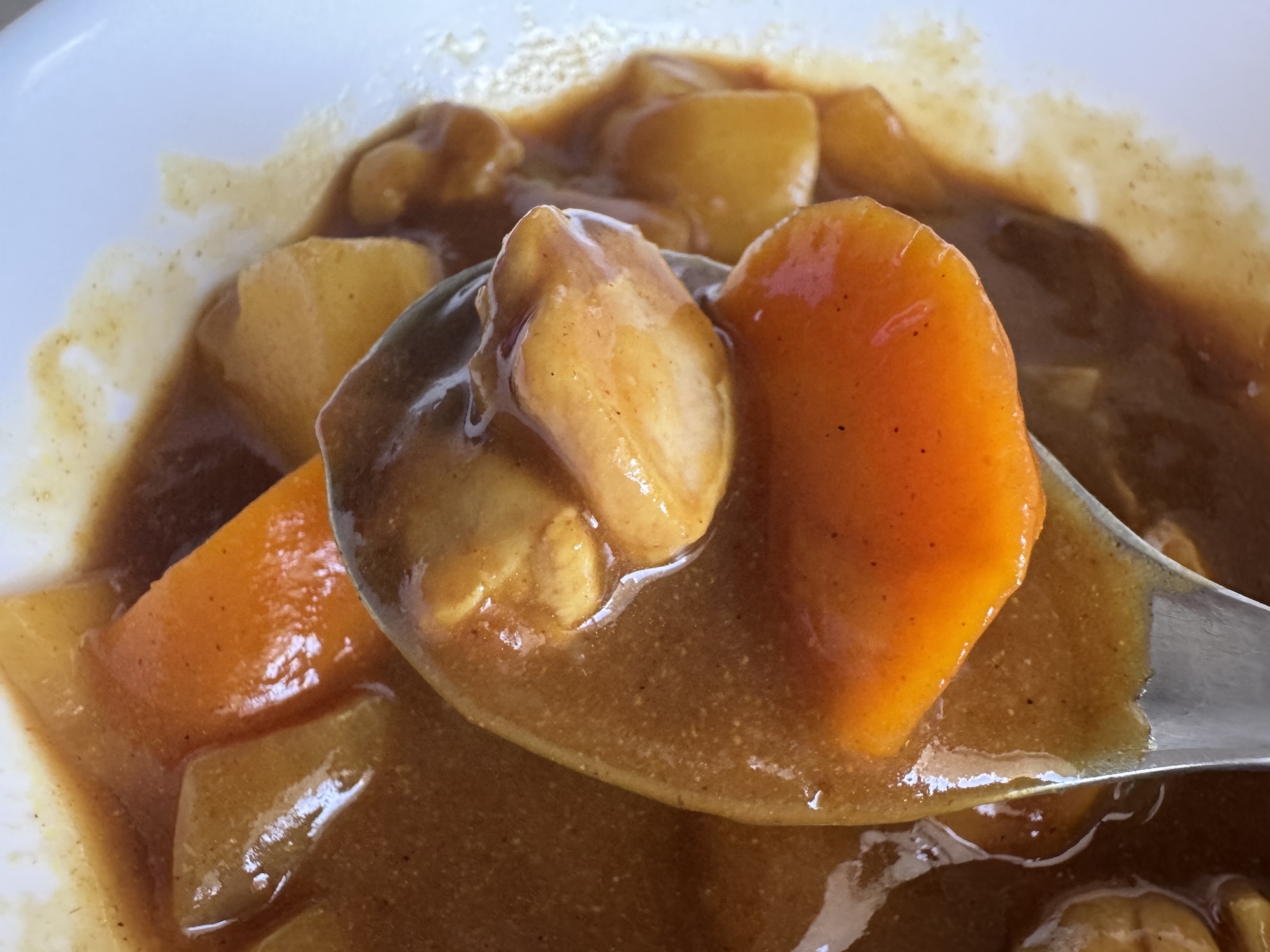 特徴としては味が濃いめなこと、とろみが強めなこと、若干 “粉っぽさ” があることだろうか。そのへんは好みによるが、中には「カレールウの中でこれが一番好き」となる人もいるはずなので、家カレー好きなら試してみる価値はあると思う。辛さは「甘口以上、中辛未満」程度。お子さんも安心!