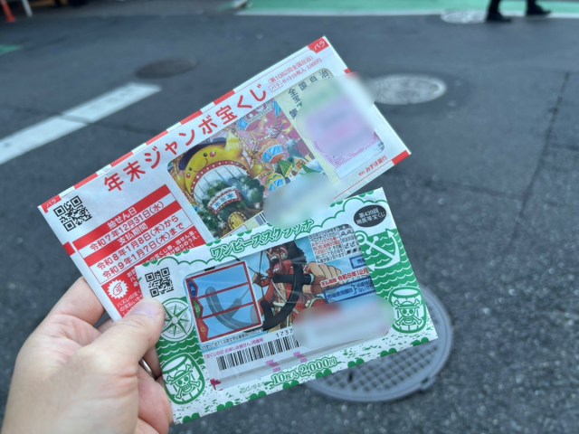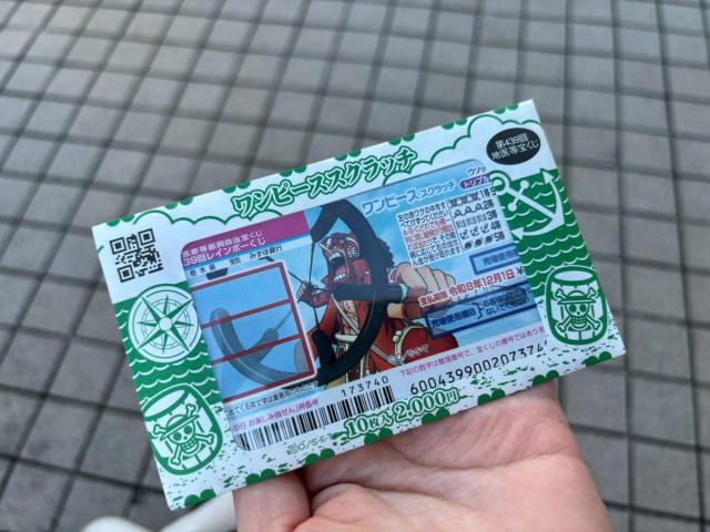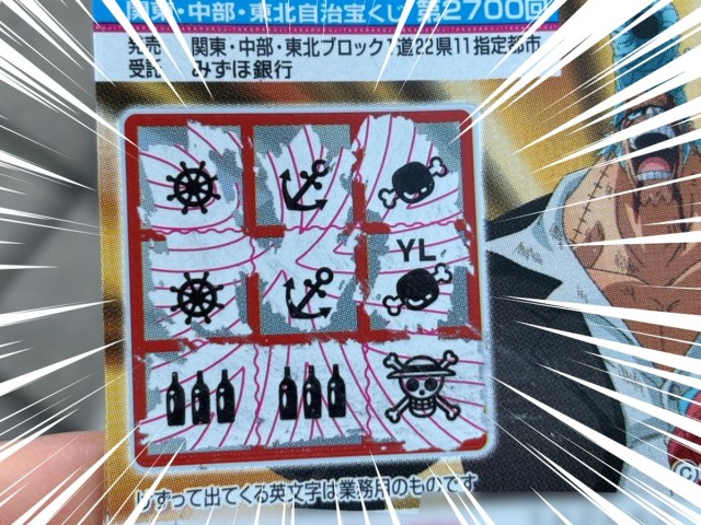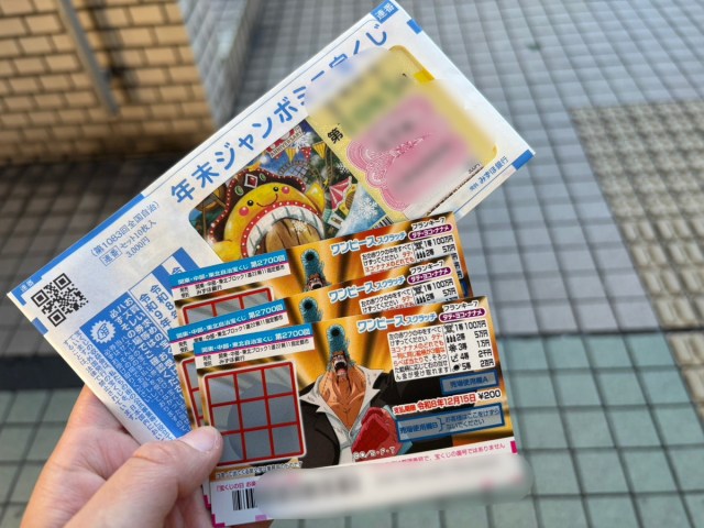 今回は、年末ジャンボ宝くじバラ3000円分と、すぐに結果が出るワンピーススクラッチ(ウソップ8 トリプルマッチ)10枚(2000円)を購入。