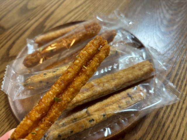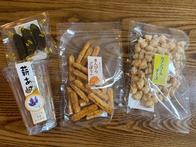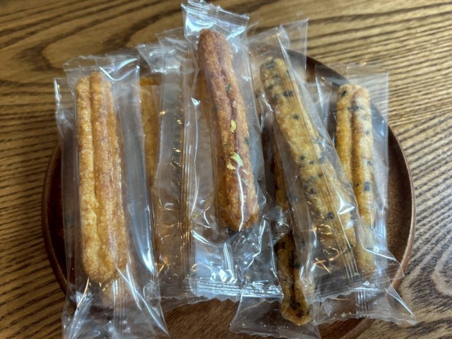 細長い形状が特徴で、埼玉県産のお米「彩の輝き」と米油を使用した高砂製菓の看板商品だという。噛むほどに香ばしさが広がり、ほどよい硬さで食べやすい。おいしかったので、3種セットを購入した。