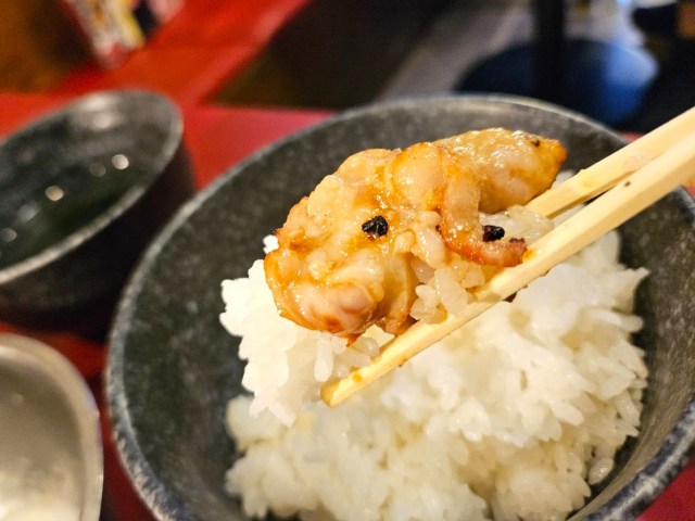 旨辛タレで味付けされたホルモンは150gと結構ボリューミー。