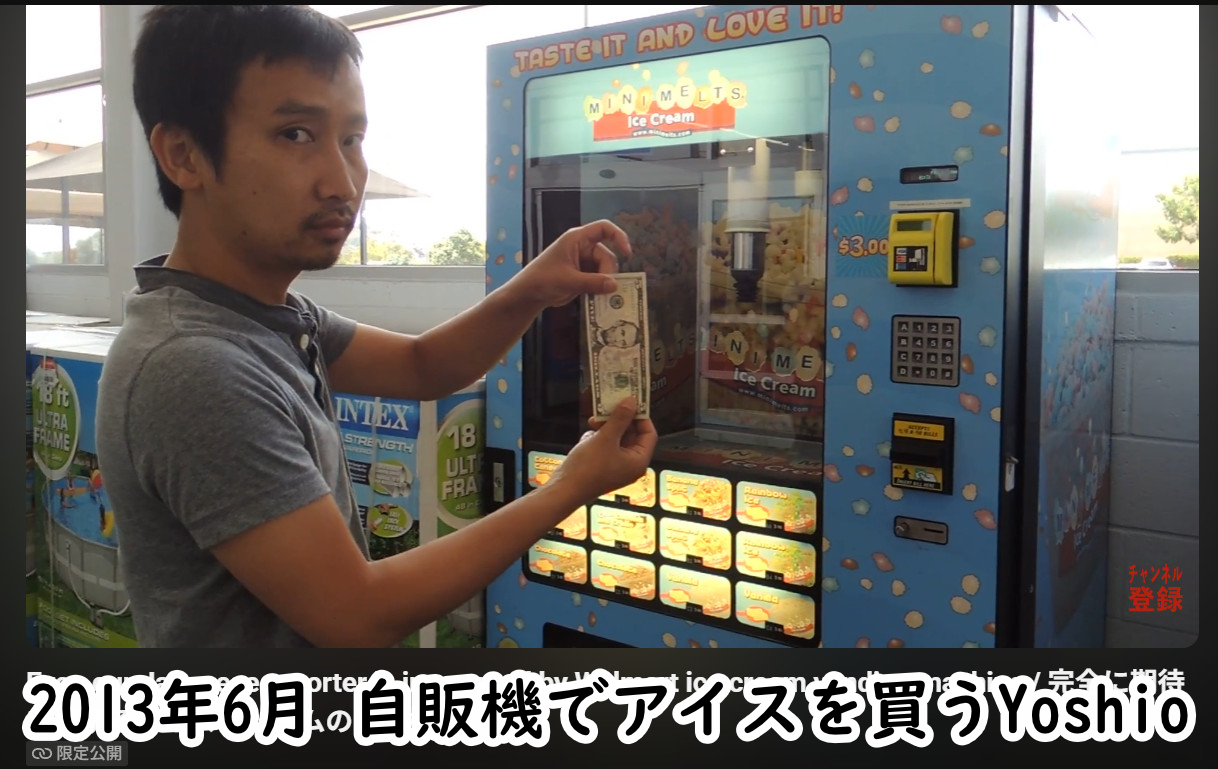 今と違うといえば、当時のYoshioはかなりシャープだった。アメリカに行ったときに、利用したアイスクリームの自販機を紹介している動画があった。