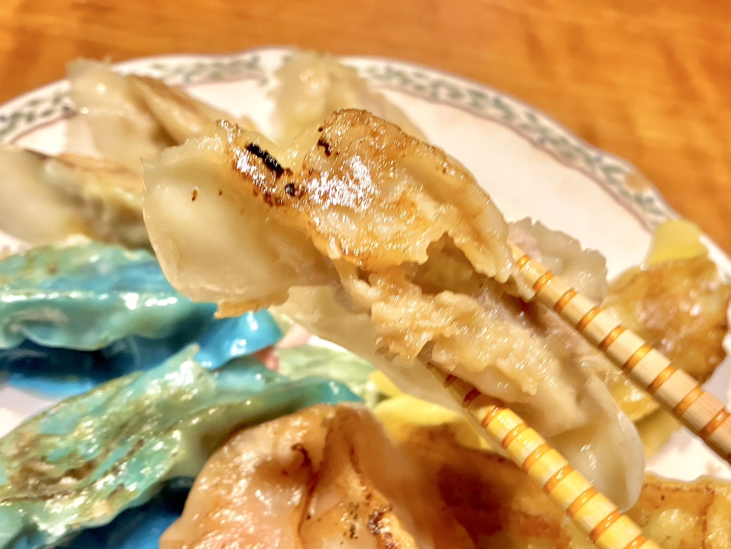 といっても辛くはない。普通の餃子と同じような肉だねの味で、小さなお子様や辛い物が苦手な人でも問題なく食べられそうだ。