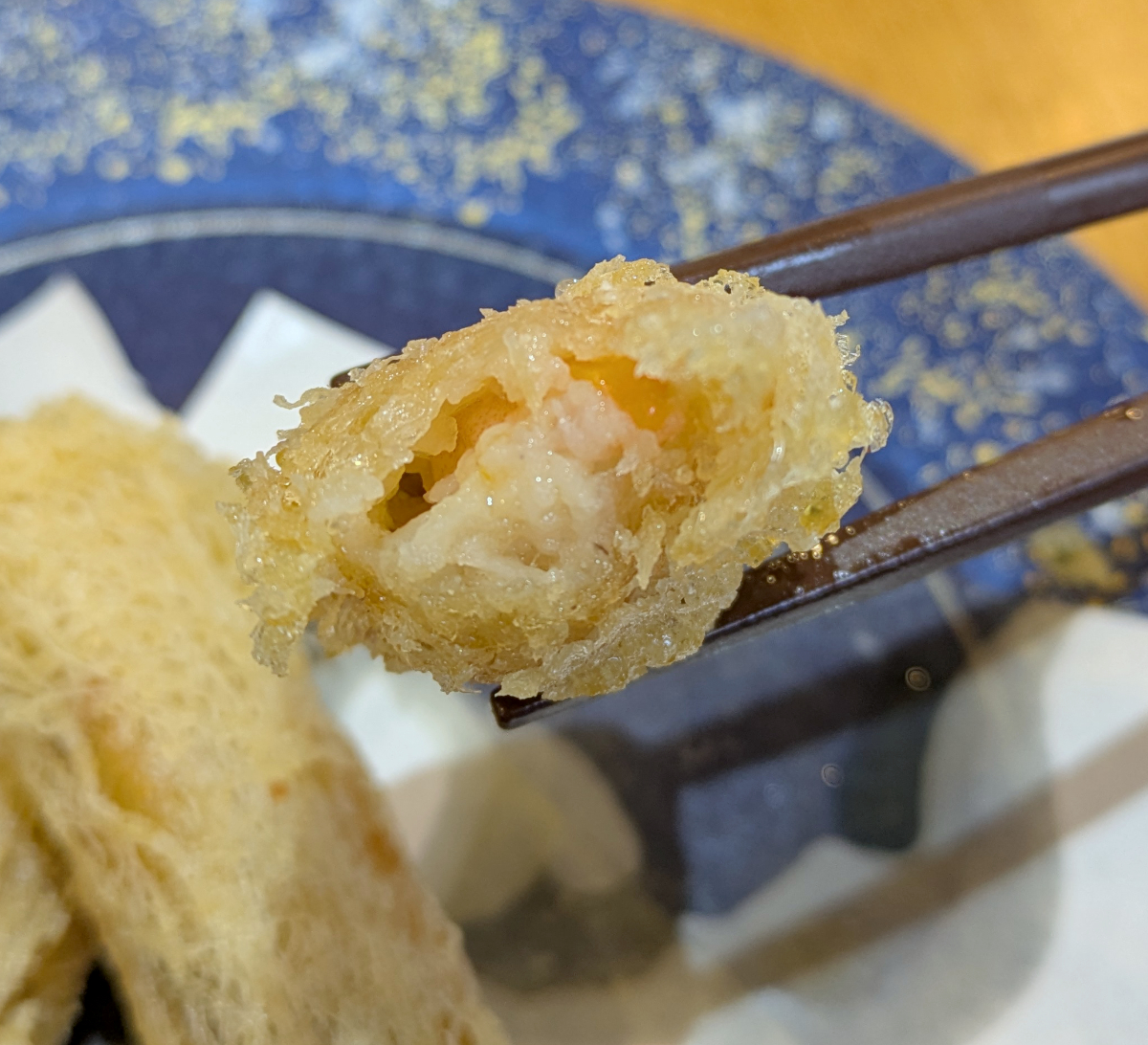 食べると名前の通りにサクサク! そしてエビはプリプリ! これはもしかして、トルコやギリシャでデザートに用いられる「カダイフ」を巻いてあるんじゃないかな。サックリパリパリとした食感が心地よく、酒のツマミとしてもいける一品だ。