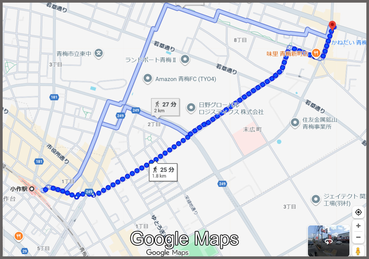距離は約1.8キロ。25分でお店にたどり着くようだ。
