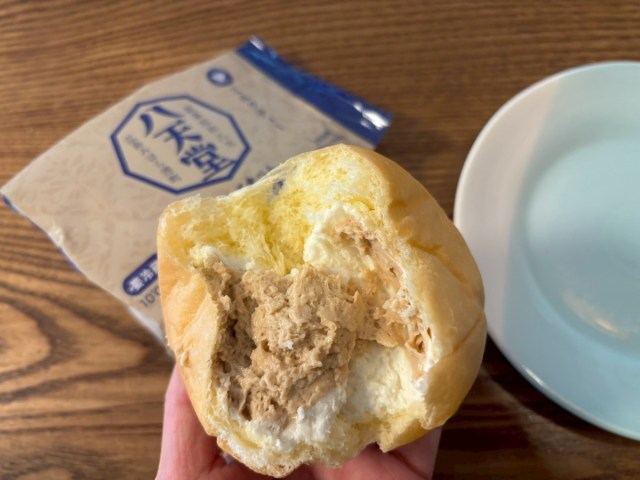 今回は、ファミリーマート限定の「冷やして食べる とろけるくりーむパン ミルクティー」選んだ。相変わらずのしっとりした生地に軽やかなクリーム。
