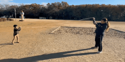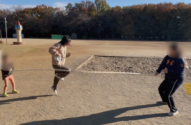 少し腹ごなしをしたところで、次は運動の “8” 。家族でハマっている大縄の八の字跳び に挑戦した。