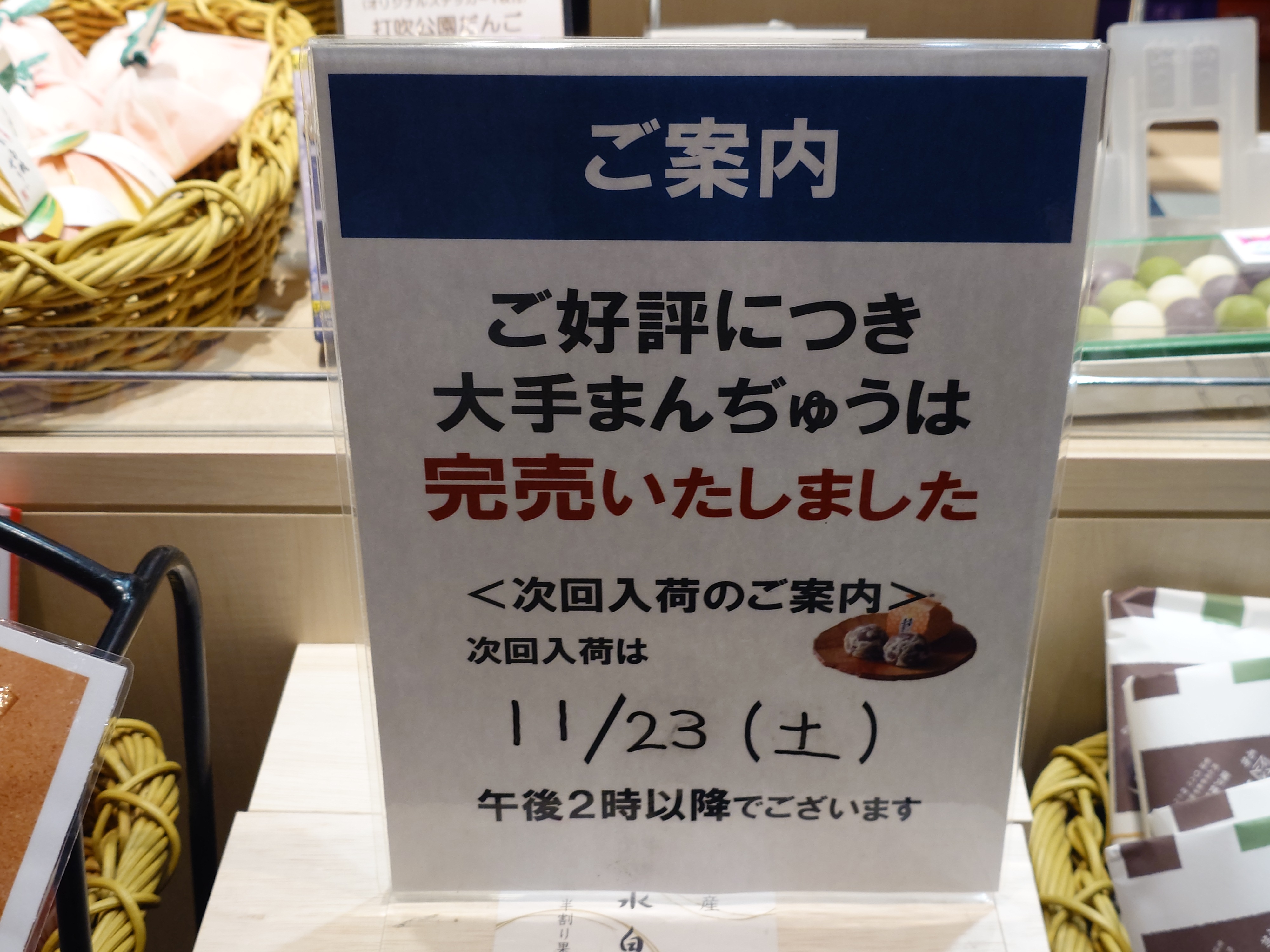 売り切れているという状況自体が圧倒的な説得力を持っているのでガチなのだろう。「大手まんぢゅう」は入荷するはしから速攻で売り切れ、在庫が1日持たないのも珍しくないという。