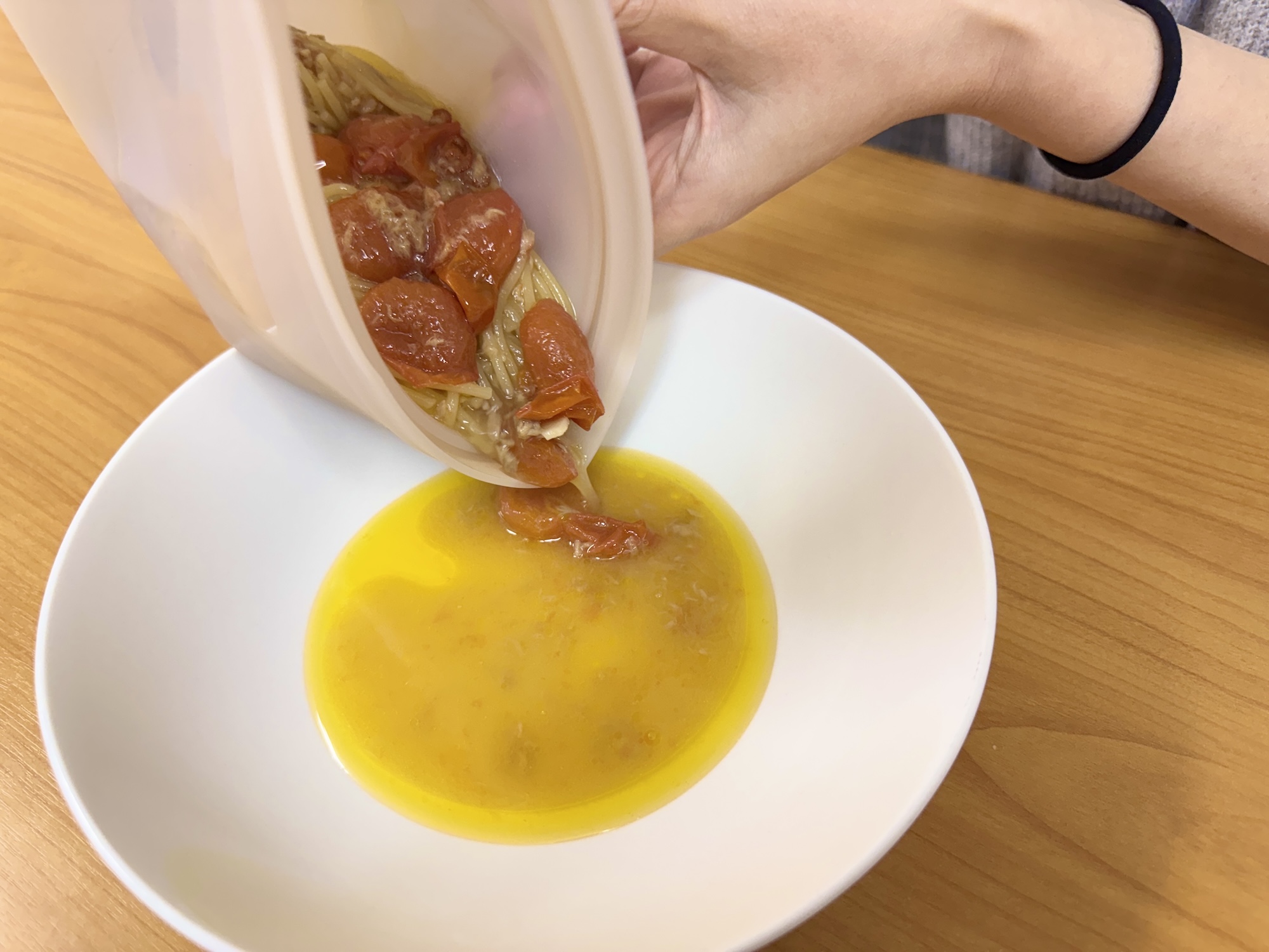 「保存バッグのはずでは……?」と心の中で疑念を抱いていた私だが、途中でなんとなく察した。そう……シリコーン保存バッグは “保存” のほかに “調理” もできるのである。あまりにも簡単だけど、味のほうは大丈夫なのだろうか?