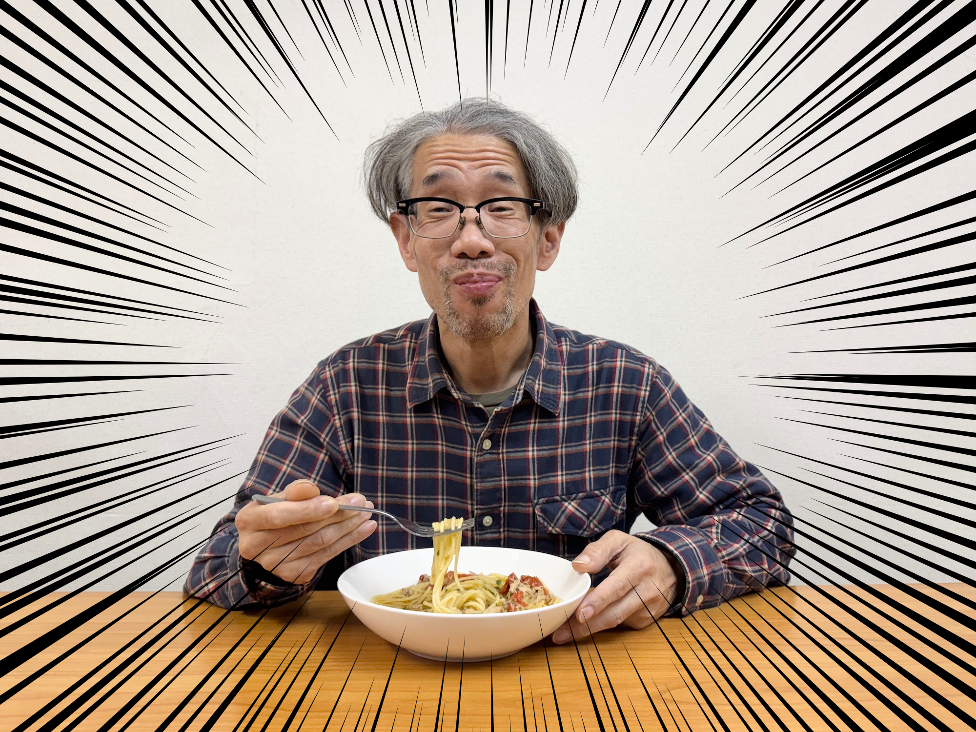 嬉しそうな佐藤記者を前に、胸を張って「手作りです」と言えない昭和生まれの自分がいた。が、このパスタが100%完全な手作りであることは、まごうことなき事実である。ただ簡単すぎて怖いだけ……これが “令和の手作り” か。