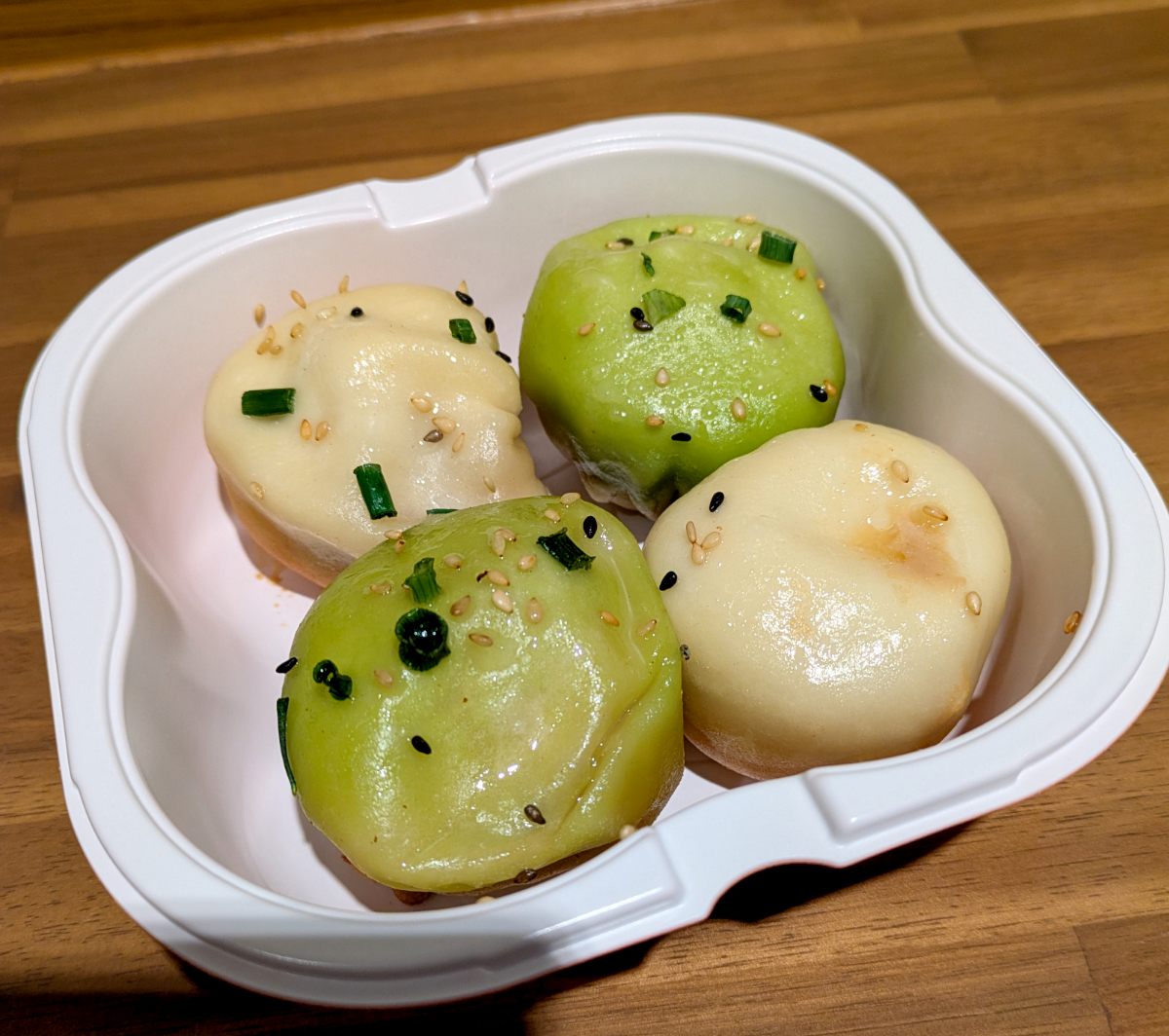 せっかくなので、「2色(海鮮・豚肉)焼き小籠包」(税込800円)を頂きました。並ばなくても食べられることを、並んでいる人に教えてあげたい。でも、不審がられるのでやめておきます……。