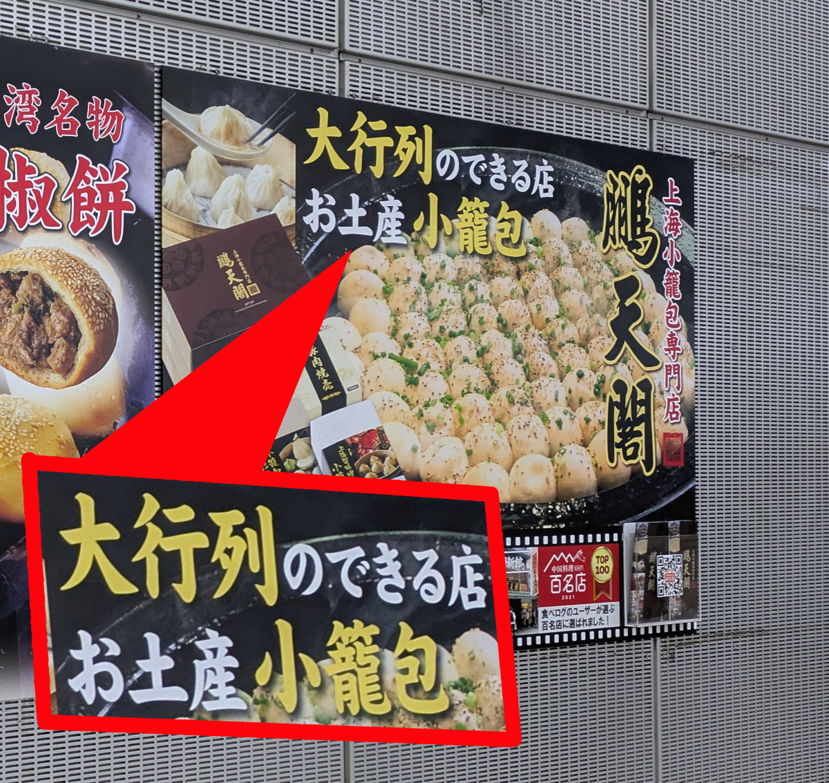その並びの看板には小籠包の「大行列のできる店」とある。